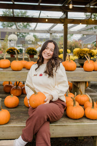 • The Fall Embroidery Crew Sweatshirt is a soft, cozy pullover featuring charming embroidered fall motifs that bring instant autumn vibes. With its relaxed fit and cozy interior, it’s the perfect blend of comfort and seasonal charm.