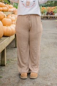• The Mocha Drawstring Knit Pants are crafted from an ultra-soft, stretchy knit fabric that feels like a dream. Designed with a relaxed wide leg, adjustable drawstring waist, and flowy drape for that perfect mix of comfort and polish.